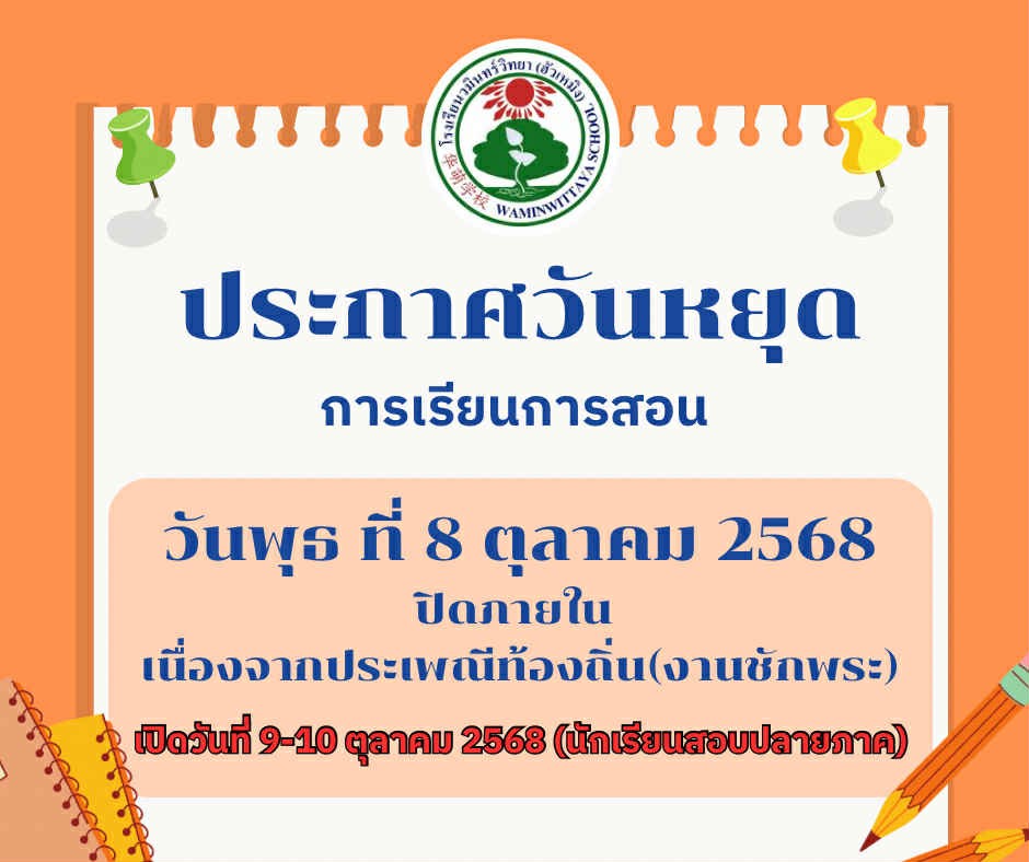 #ประกาศวันหยุดการเรียนการสอน วันพุธ ที่ 8 ตุลาคม 2568