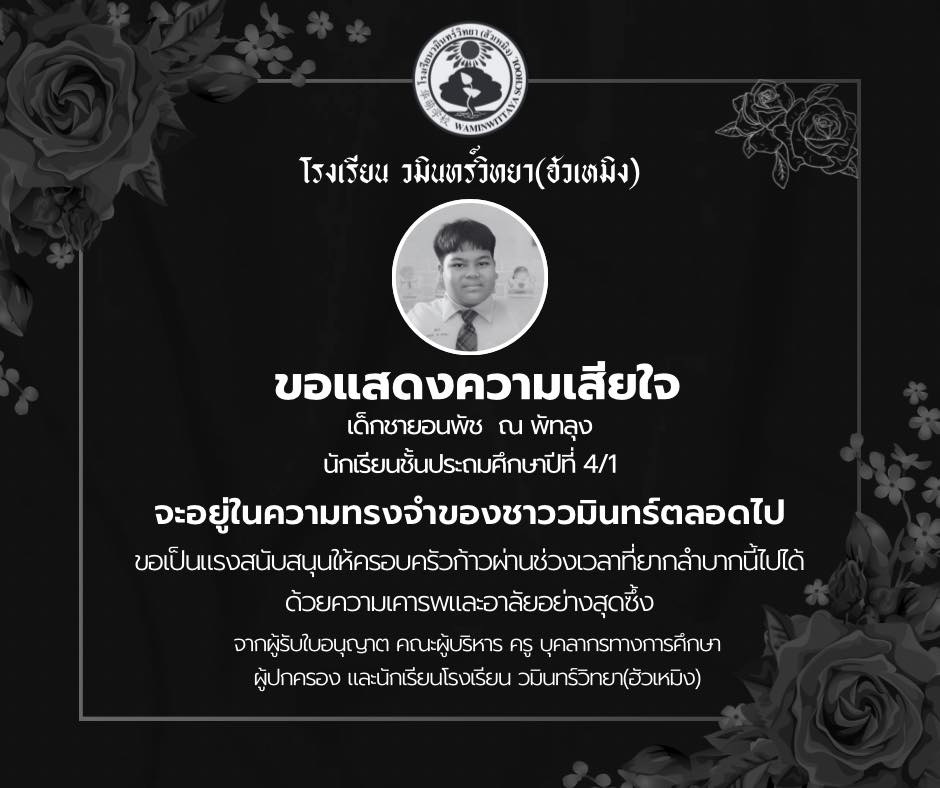 เมื่อคืนวันที่ 6 ธ.ค. ที่ผ่านมา โรงเรียนวมินทร์วิทยา (ฮัวเหมิง) เครือข่ายผู้ปกครอง และผู้ปกครองนักเรียน ร่วมเป็นเจ้าภาพในการบำเพ็ญกุศลศพ คุณพ่อสุทีป แก้วลิเล็ด ซึ่งเป็นคุณพ่อของคุณครูพัชรี แก้วลิเล็ด