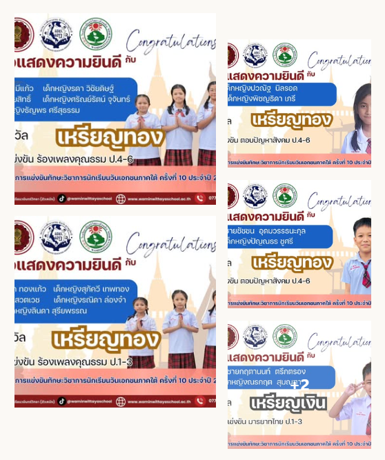 ขอแสดงความยินดีกับ #กลุ่มสาระภาษาไทย ได้รางวัล เหรียญทอง 2 รายการ เหรียญเงิน 1 รายการ เหรียญทองแดง 4 รายการ ในการแข่งขันทักษะวิชาการนักเรียน วันการศึกษาเอกชนภาคใต้ จังหวัดสุราษฎร์ธานี ประจำปีการศึกษา 2568