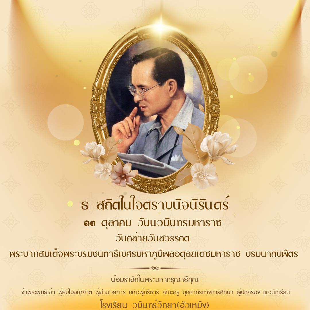 ๒๕ พ.ย. ๒๕๖๘ : โรงเรียนวมินทร์วิทยา (ฮัวเหมิง) ได้ดำเนินการจัดพิธีถวายราชสดุดี เนื่องใน “วันสมเด็จพระมหาธีรราชเจ้า” ซึ่งเป็นวันคล้ายวันสวรรคตของพระมหาสมเด็จพระมงกุฎเกล้าเจ้าอยู่หัว โดยนายบัญญัติ สุขขัง ผู้อำนวยการโรงเรียนวมินทร์วิทยา (ฮัวเหมิง) พร้อมด้วย