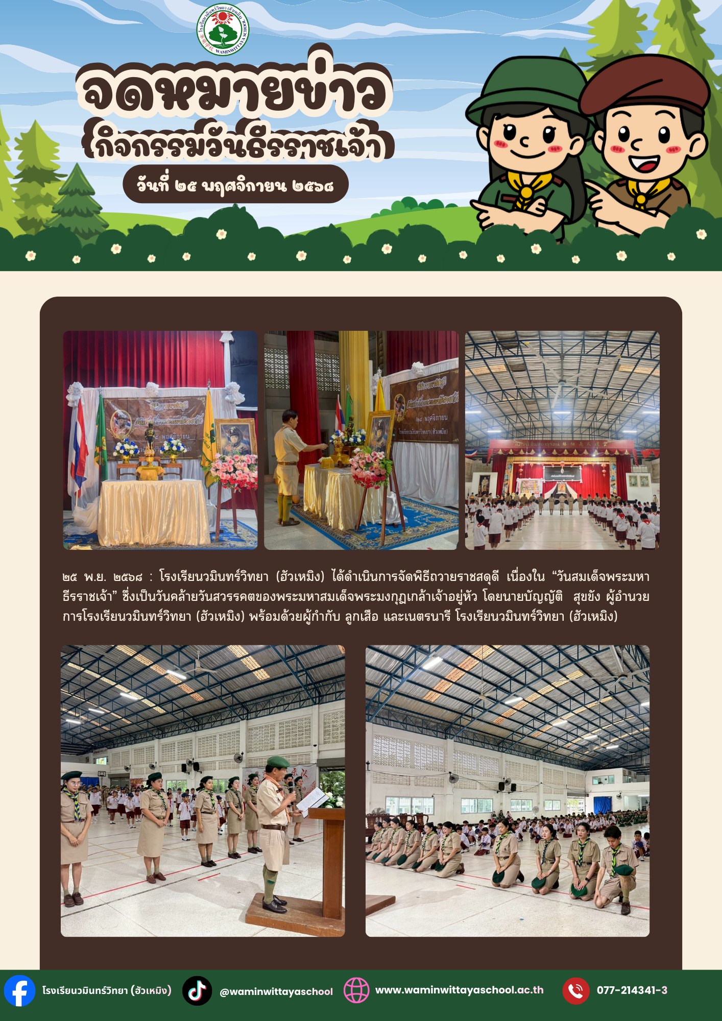 ๒๕ พ.ย. ๒๕๖๘ : โรงเรียนวมินทร์วิทยา (ฮัวเหมิง) ได้ดำเนินการจัดพิธีถวายราชสดุดี เนื่องใน “วันสมเด็จพระมหาธีรราชเจ้า” ซึ่งเป็นวันคล้ายวันสวรรคตของพระมหาสมเด็จพระมงกุฎเกล้าเจ้าอยู่หัว โดยนายบัญญัติ สุขขัง ผู้อำนวยการโรงเรียนวมินทร์วิทยา (ฮัวเหมิง) พร้อมด้วย - 27/11/2025
