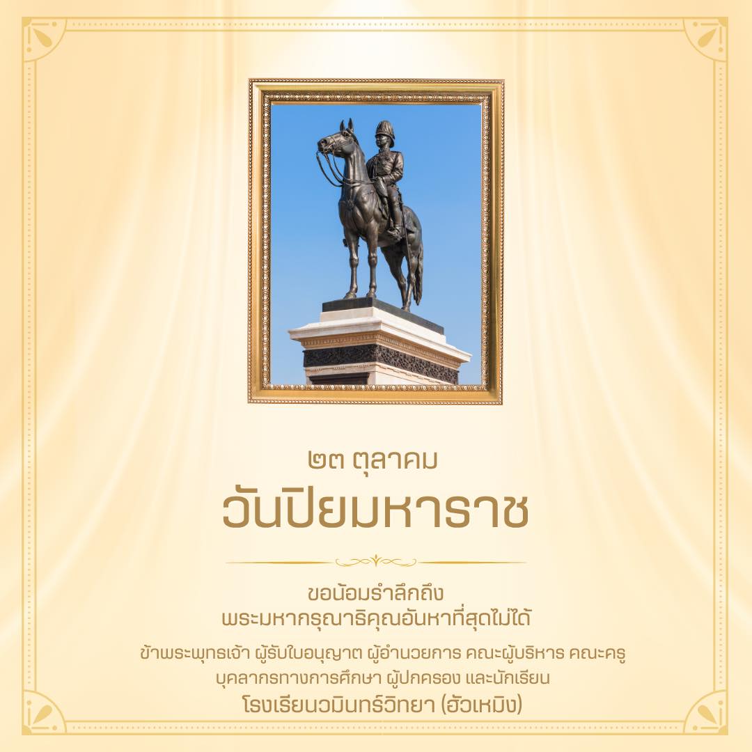 23 ตุลาคม 2565 เวลา 08.30 น. ตัวแทนฝ่ายบริหารคณะครู นักเรียน รวมพิธีวางพวงมาลา น้อมรำลึกในพระมหากรุณาธิคุณ เนื่องในวันคล้ายวันสวรรคต พระบาทสมเด็จพระจุลจอมเกล้าเจ้าอยู่หัว 23 ตุลาคม 2565 ณ ศูนย์กลางการประชุมสัมมนาภาคใต้ตอนบน ศาลาจังหวัดสุราษฎร์ธานี