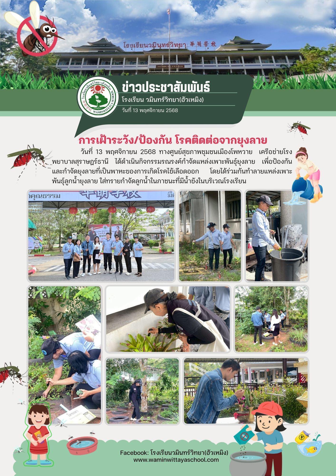13 พ.ย. 68 : ศูนย์สุขภาพชุมชนเมืองโพหวายเครือข่ายโรงพยาบาลสุราษฎร์ธานี เข้ามาสำรวจแหล่งเพาะพันธุ์ลูกน้ำยุงลาย เพื่อเฝ้าระวัง/ป้องกันโรคไข้เลือดออกในสถานศึกษา