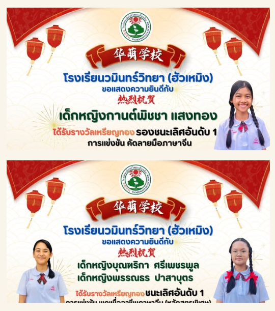 โรงเรียนวมินทร์วิทยา(ฮัวเหมิง) ขอแสดงความยินดี....